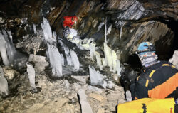 V neděli pokračujeme v kontrolách našich lokalit. Jenže to nebylo tak jednoduché. V noci pršelo a na zemi to mrzlo. Cesty, chodníky pokryl tak centimetr ledu. Odvážný Kuba chtěl odjet, ale jeho Octavia skončila 200 m od penzionu. K dolům jsme velmi opatrně vyrazili pěšky. Leny vedl opět mapovací skupinu a Pepa s Pavlem, Jarynem a Vaškem zamířili na III patra, do našeho největšího zimoviště netopýra černého, zatím co Monika s kamarády z krasu na horní patra. A opět jich bylo skoro 2000. Samozřejmě nejvíce netopýrů černých. A třetí patro je po mrazivých dnes pěkně zaledněné a teplota je okolo +20C, což netopýrům černým vyhovuje.