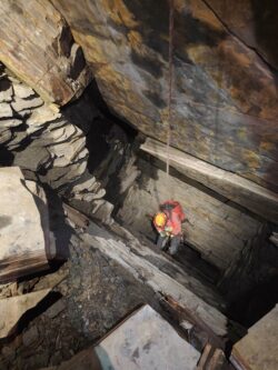 Leny se svým babským mapovacím družstvem opět vyrazili dokončit mapování. S ním Petr, Jirka … Ale většina se tam spíše šla podívat. Mapovalo se na horních patrech a tak opět přišla vhod technika SRT