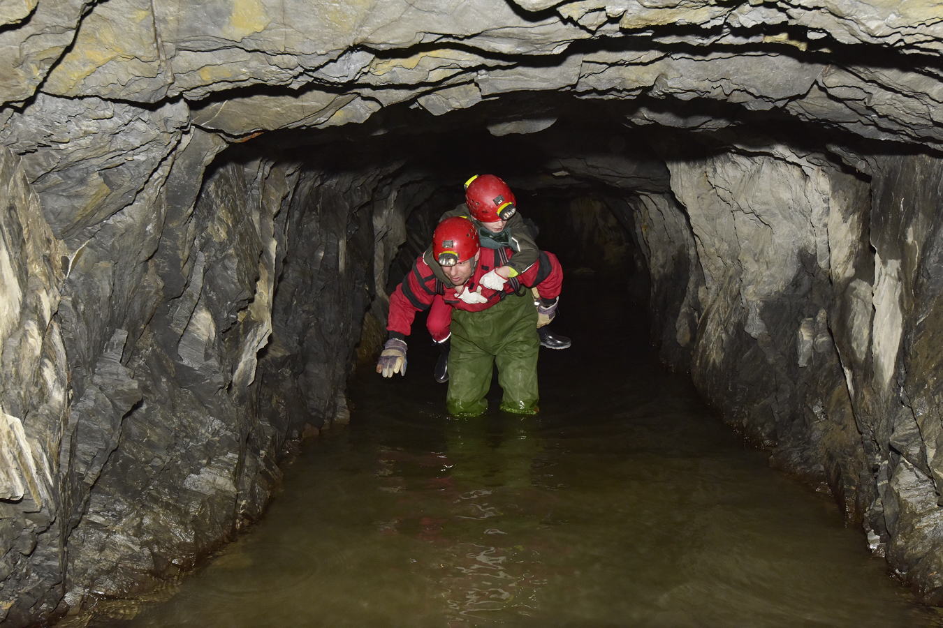 Je 13 února, když pod haldou nad řekou Moravicí se dělíme na dvě skupiny. Honza, Víťa se svou samicí Luckou a Pavel balí do vaků lana a vyrážejí k horní šachtě hluboké 40 metrů, která vede na 1 a 2 patro. Pepa, Pavle st., Petr, Jirka a Luděk se svým synem Martinem vyrážejí přes spodní svážnou chodbu (která bohužel slouží chatařům jako smetiště) na III patro dolu. Na třetí patro se musí, přes zaplavené chodby, kde bylo vloni vody nad pás. Letos tady bylo vody mnohem méně.