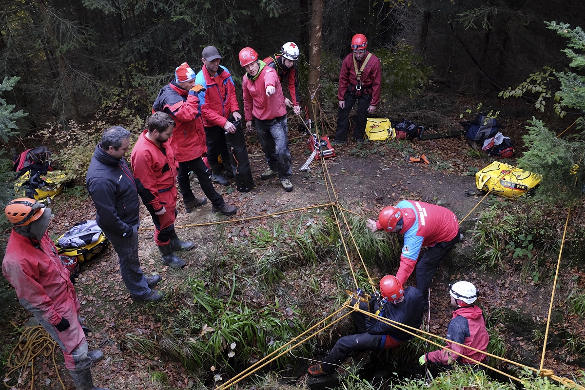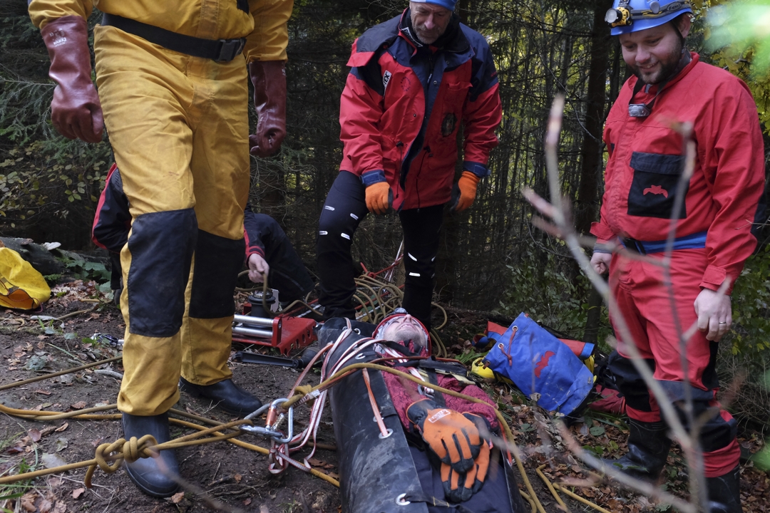 Nácvik záchrany v Kněhyňské jeskyni s HS Beskydy