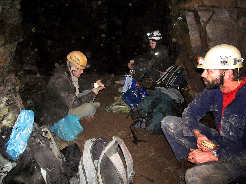 Důl František leží tam, kde se moc pohybovat nesmíme. Ale přesto je to zimoviště netopýrů a tak jej občas musíme zkontrolovat. Tentokráte, 19 ledna, cestou necestou se do něj vydali Petr, Honzaa Dalibor. Hlavní problém je vždy překonat nebo obejít ústí šachtice uprostřed křížících se chodeb. I tentokráte to chtělo hodně dobré lanové přemostění. Petr kontroluje naši mapu dolu z roku 1995 s historickými mapami, které se mu podařilo sehnat. A musel konstatovat, že jsme už tehdy mapovali přesně.