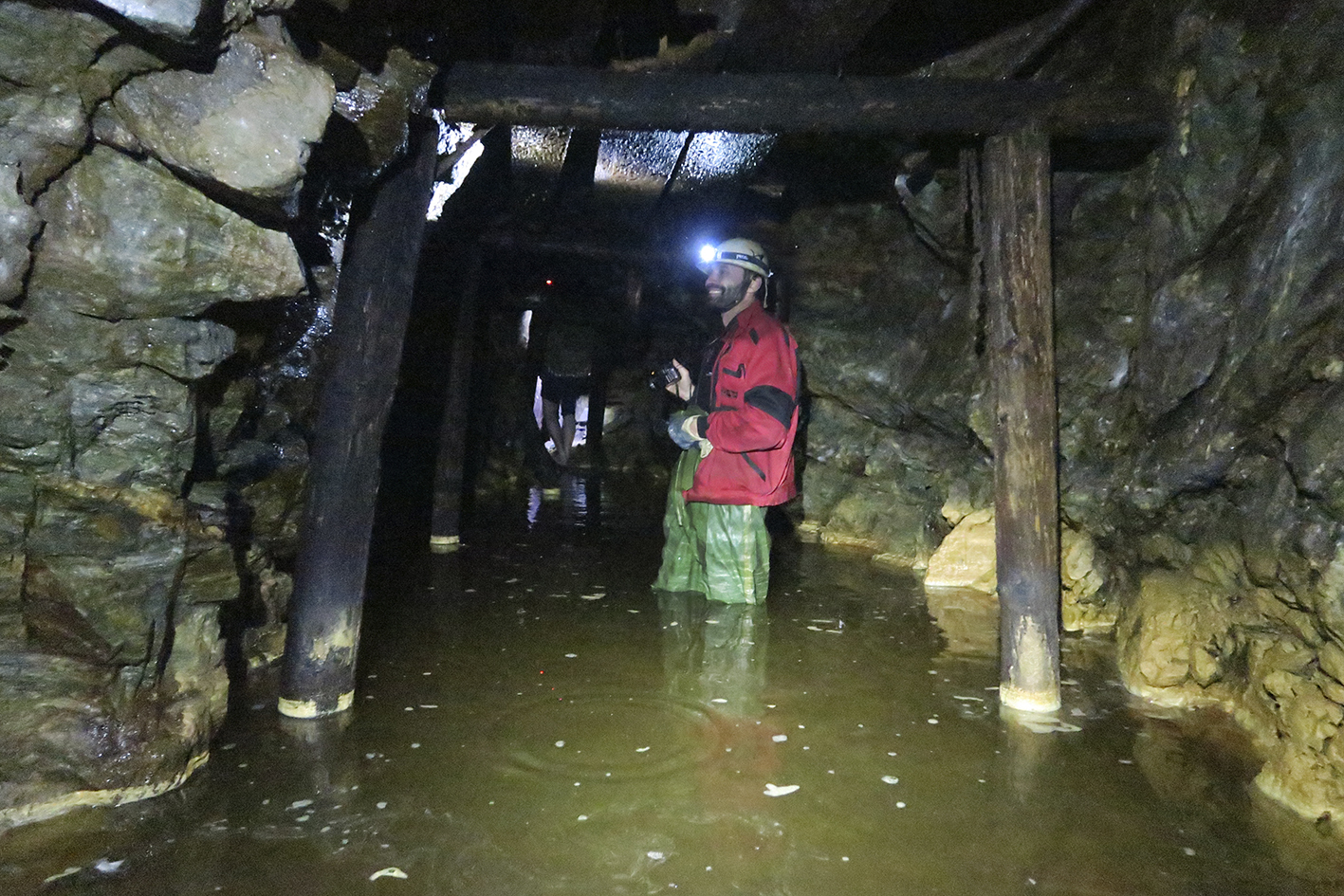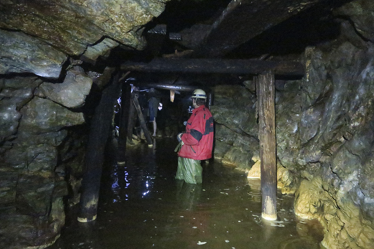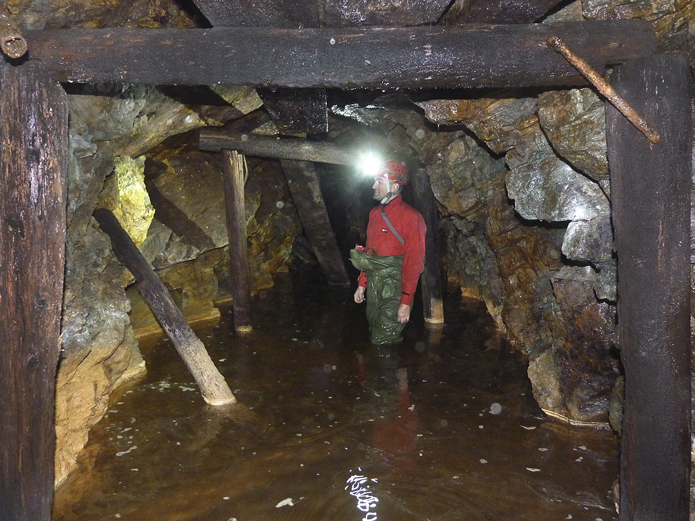 Jenže to nebyla nejvíce zatopená štola. V další, bezejmenné štole byla hloubka vody ještě vyšší a „broďáky“ nestačily. Daliboru s Jirkou to moc nevadilo. Vodu sice nabrali, ale štolu zkontrolovali . Není nad ledovou koupel v lednu.