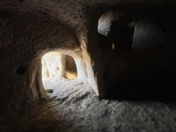 Umělé jeskyně se nacházejí kolem přírodního úkrytu, převislé skály, která obsahovala pozůstatky z doby bronzové, kolem roku 1 500 př. n. l. Jeskyně byly vyhloubeny během islámské okupace této části Španělska, s největší pravděpodobností jako sýpky, jednoduché sklady obilí a dalšího zboží. Jejich původ nebyl definitivně objasněn. Cesta zpět k zaparkovaným automobilům vedla po původně postavené trati okolo kaple Ermita de la Mare de Déu de la Llum I de Sant Anto. Scházíme zpět do údolí k zaparkovaným autům a už z dálky vidíme, že jedno z aut má dveře dokořán. Je záhadou, jak k tomu došlo, ale z auta se vůbec nic neztratilo.