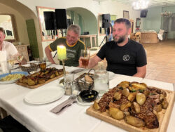 Večer se v místě noclehu setkáváme s druhou části výpravy, která přicestovala z Česka mikrobusem. A přivezli dárky pro španělské kamarády a hlavně kartony piva. A všichni jsme ubytování v penzionu El Cid Coutry Club. Je skvělý-  zvláště večeře, které tam pro nás organizuje ukrajinský personál.