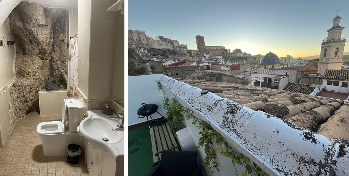 Příští den se probouzíme v penzionu, který jak zjišťujeme je nalepený na stěnách staré jeskyně a některé ze stěn pokojů jsou prostě jeskynní prostory. Opravdu zajímavé řešení a pohled z balkonu na město Buñol, vynahrazuje noční trable. Malebné historické městečko s hradem, který se tyčí nad námi. My se ale balíme a jedeme na sever, směr Albaraccín.