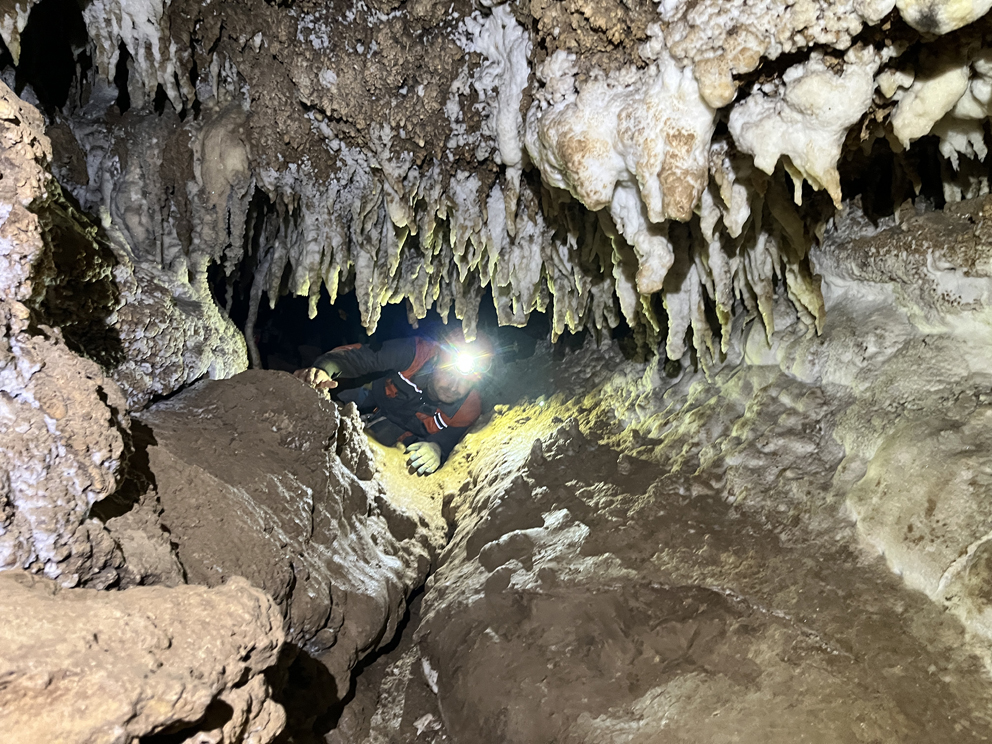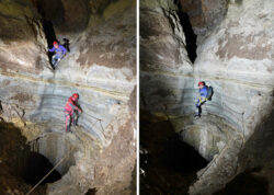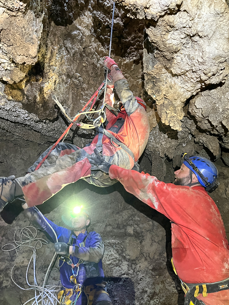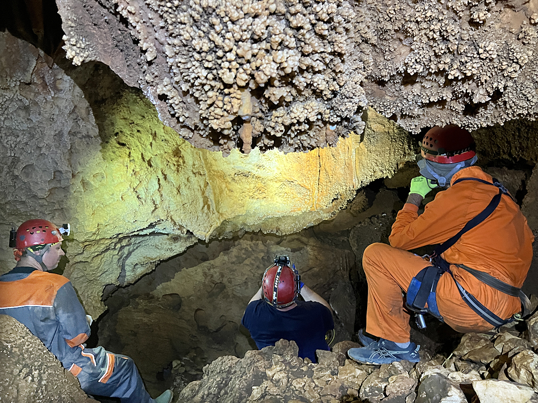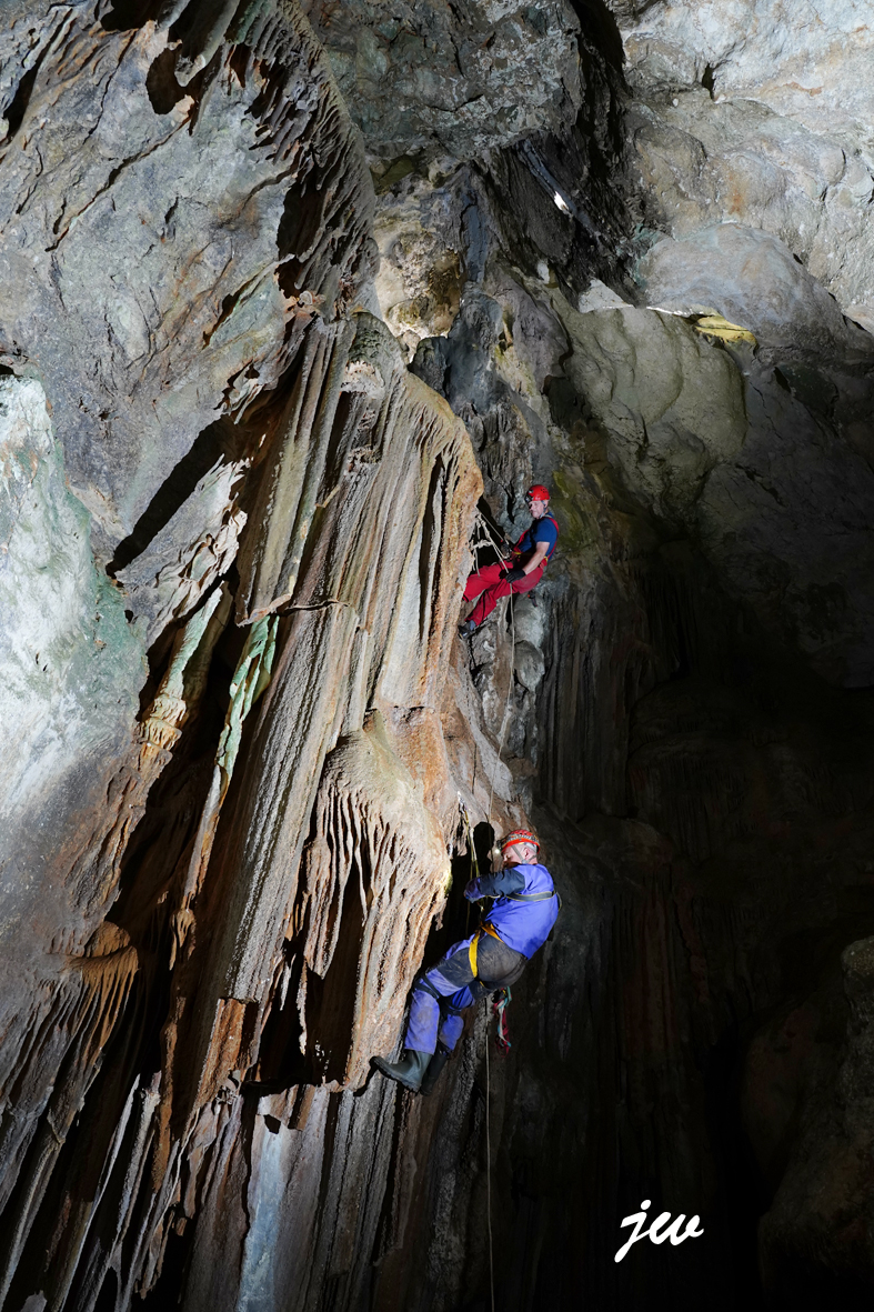 K sestupu vstupní vertikálou (hl. asi 15m)  stačí lano 30 m, dále již není lano zapotřebí. Je možno vystoupit po krápníkové výzdobě i výše, ale nechtěli jsme špinit sekundární formy v jeskyni. Excentrické formy jsou opravdu bohaté a bohatá je i krápníková výzdoba zvláště mnohametrové záclony.