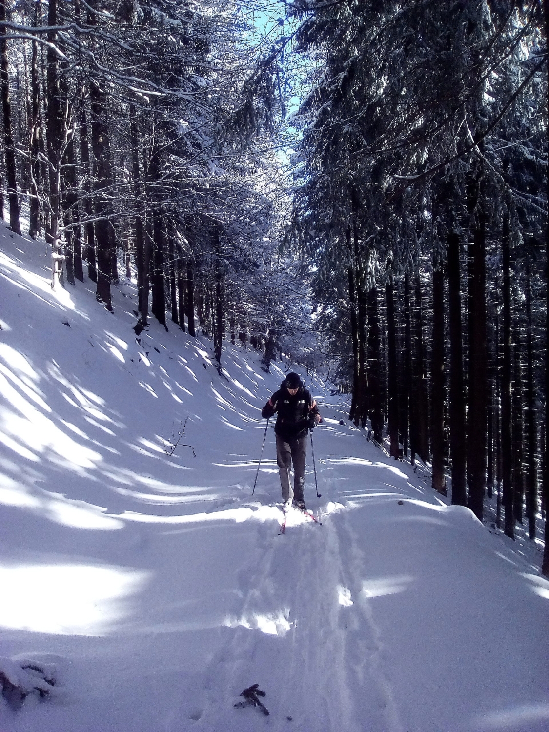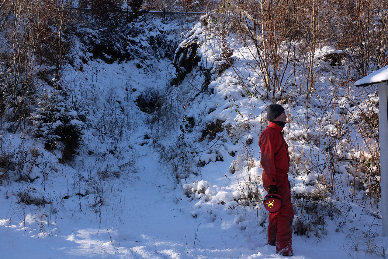 Mrzne až praští. Na teploměru -17°C. Směr Budišov vyrážejí Pepa s Jirkou. Naštěstí cesty jsou již sjízdné a tak se dá dojet až k opět činnému dolu Radim ve Svatoňovích (dříve Břidlicový důl staré Oldřůvky patřící JZD Staré Oldřůvky). Dnes patří soukromé společnosti. Stejně jako v loni přes zákaz vjezdu zajíždíme až ke správním budovám. Službu konající pracovník nás hned poznává a říká: „Co se budete převlékat venku na mraze, pojďte dovnitř“. Samozřejmě hned nabídky využíváme. Vyhřátá šatna- pěkný komfort. Sněhu je asi 15 cm a za chvíli mizíme ve Wood Boysu, kde je stabilních +7°C. Příjemné bylo i zjištění, že v dole zimuje rekordní počet netopýrů. Skoro stovka. Převlékáme se ve vyhřáté šatně a jedeme do Zálužné, kde je nově lokalizovaný důl Obecní štola. V minulosti jsme na ni nějak zapomněli.