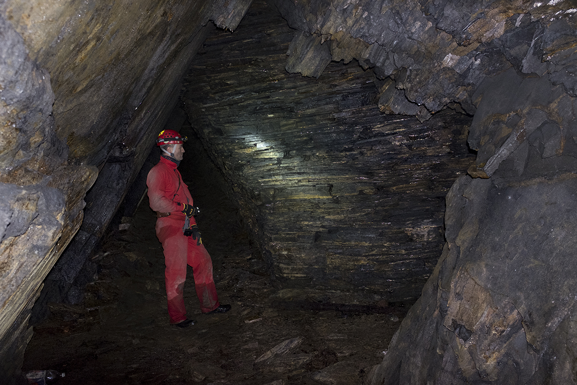 Převlékáme se tentokráte na mraze ale za 15 minut jsme uvnitř. Domnívali jsme se, že je to malá štola. Ale důl kromě stometrové vstupní štoly má dvě větší vytěžené komory, z části vyplněné základkou. Leny zde byl v polovině prosince a pravil ,v dole nejsou netopýři. My jsme jich tam našli 12 kusů.