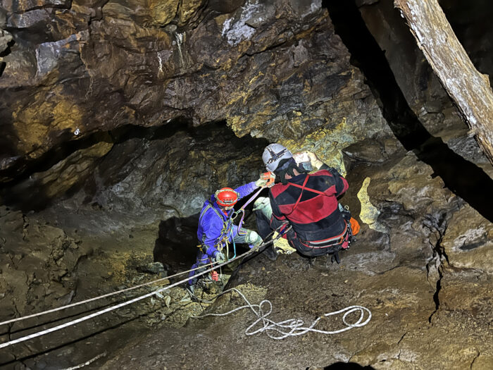 Na podzim roku 2024 zasáhly Jeseníky katastrofické lijáky a povodně. Silný stok vody po svazích hřebenů se přenesl i na stav protékajících vod ve starých důlních dílech, která slouží jako významná zimoviště netopýrů. To potkalo i důl Měděný. Ve vstupní chodbě protékající množství vody naplavilo kameny a suť a kousek za vstupem štolu zcela uzavřelo. Naštěstí má lokalita ještě horní, malý vstup, který pokračuje asi 6 metrů hlubokou šachtou. A tu chceme zabezpečit pro sestup.